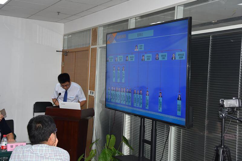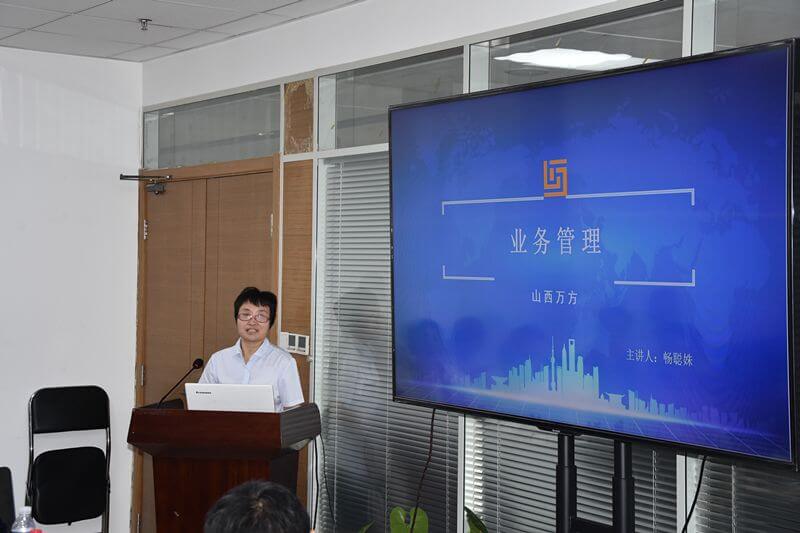 接着,山西万方的几位领导、技术骨干分别对公司的组织架构规章制度、业务管理流程、、企业管理平台的介绍与操作以及材价信息平台的介绍。副总经理原晓恺在介绍组织架构时,点出公司一、二部设置进行企业内部良性竞争这一特点。技术总监畅聪姝从合同、资料、作业、档案、绩效五方面介绍了业务流程的思路与管理。另外两位技术总监代亚娟、沙忠阳分别介绍了企业的标准化建设、教育培训情况。软件部部长李小庭展示了万方自主研发的万方清云企业管理平台、材价信息平台。
