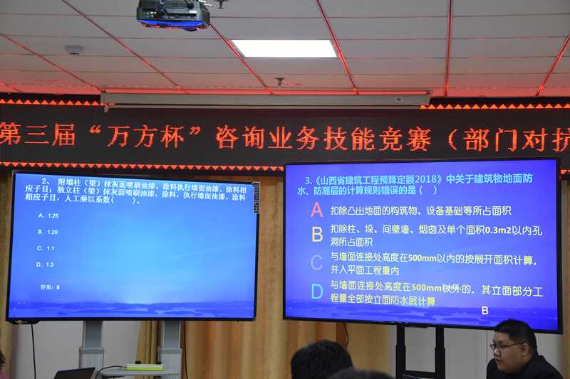 “万方杯”是我公司为提升业务部门员工专业技能水平、增强员工团结协作能力的业务知识竞赛活动。自2016年以来,“万方杯”业务知识竞赛已成功举办两届。开办以来,该活动受到公司领导的大力支持以及广大业务部门员工的极力拥护,收到良好的反响,“万方杯知识竞赛激发了我学习新知识、巩固旧知识的热情。”一位建模算量部门的员工受访时说道。