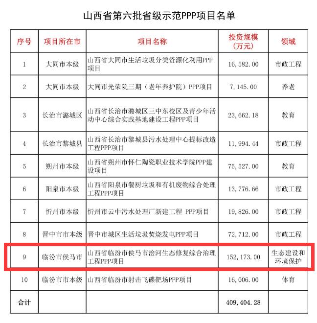 附件:山西省第六批省级PPP示范项目名单