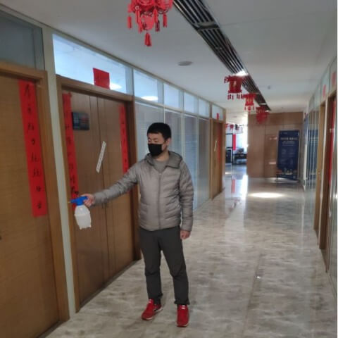 (对办公区域进行消毒)