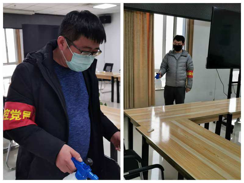 正是他们的坚守,为复工到岗人员的健康安全提供保障。公司总经理连国柱、副总经理原晓恺、技术总监畅聪姝等管理人员在疫情最严重的时期,赴公司组织防护会议,制定疫情期间防控工作的开展计划,到岗的各值班经理,在公司门“一线”签到台处,管控风险外出、监控健康数据,财务人员按需订餐取餐派餐,专人对办公场所进行消毒,几名保障部人员为疫情防护工作忙前跑后……在公司最接近病毒的地方,他们兢兢业业,任劳任怨。