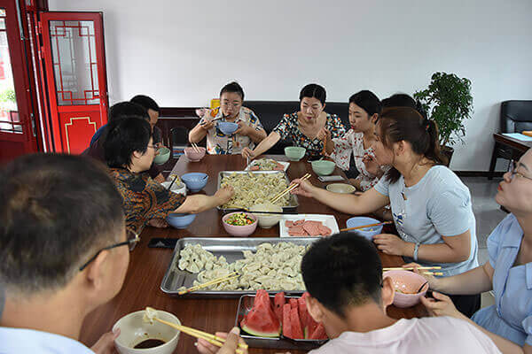 俗话说:头伏饺子二伏面,三伏烙饼卷鸡蛋。作为三伏天的开端,一定要从吃饺子开始。饺子,不仅仅是一种美食,且其形似元宝,代表着财源滚滚,表达着人们对美好生活的向往与诉求。集体包饺子,每个人参与其中,融入每个人祝福,集体合作拉进了距离增进了情感。公司举办包饺子活动,寄托着公司对员工们幸福顺意的希冀。